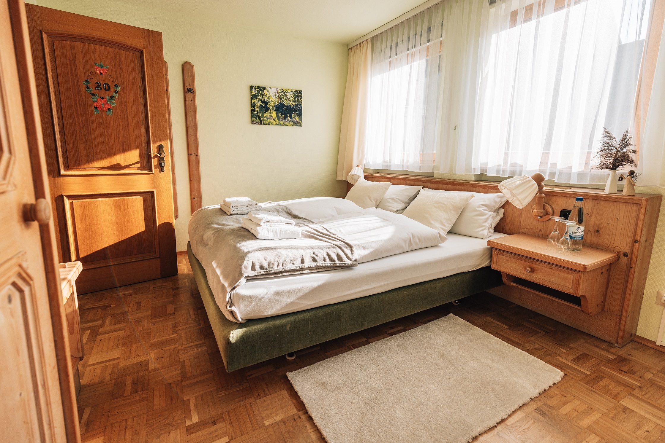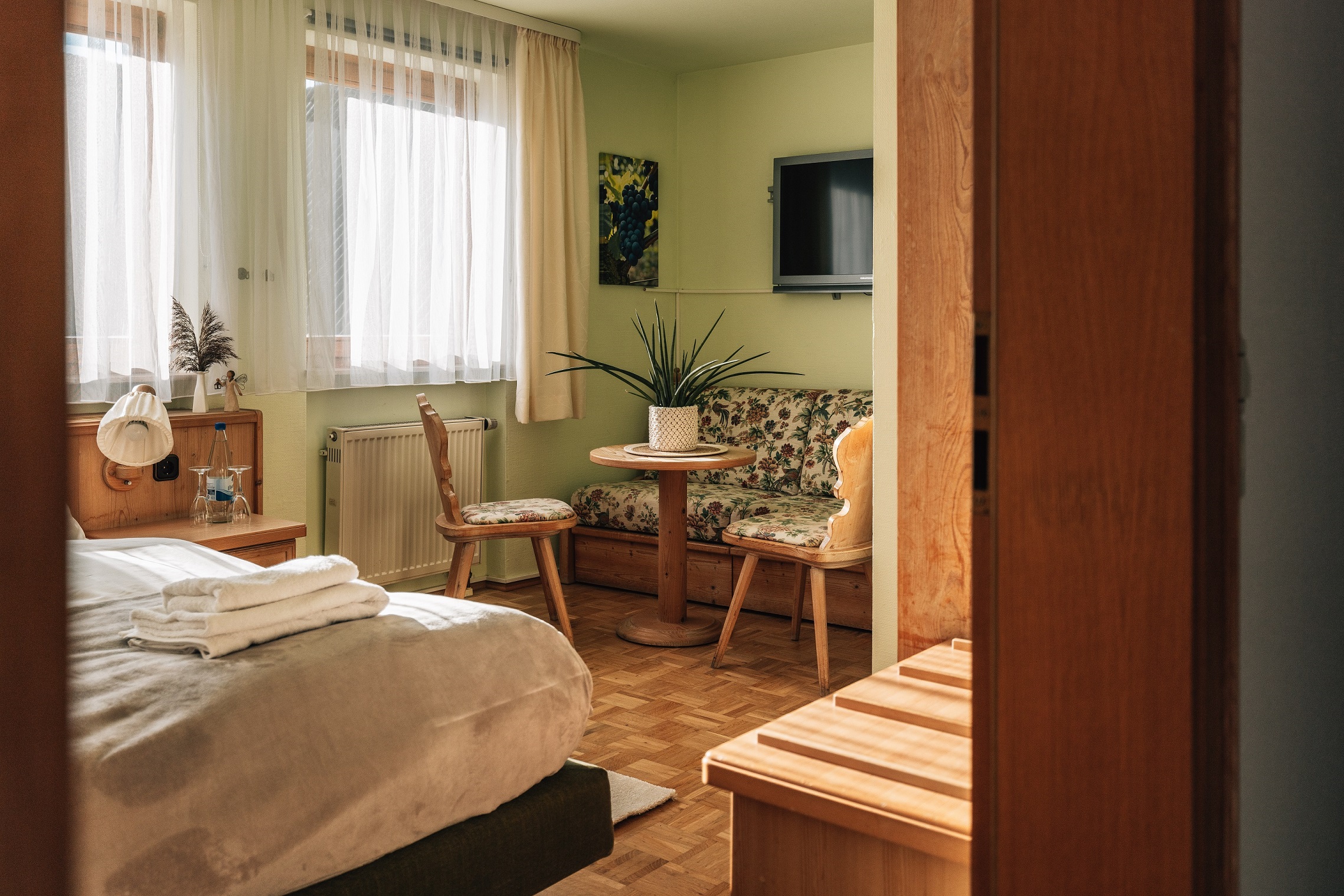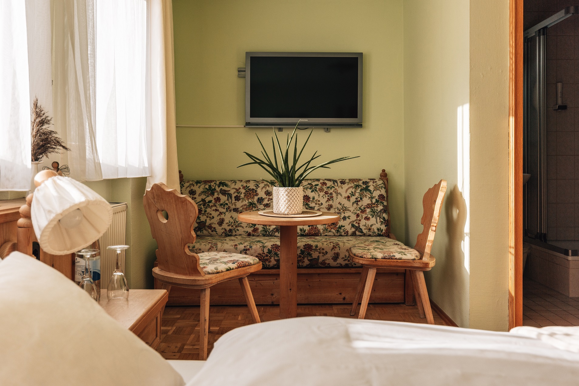 Unsere Doppelzimmer Klassik befinden sich sowohl im Haupthaus als auch im Gästehaus auf der gegenüberliegenden Straßenseite. Die Zimmer sind individuell eingerichtet und bieten ein bequemes Doppelbett sowie eine funktionale Ausstattung für einen angenehmen Aufenthalt. Auf Wunsch und je nach Verfügbarkeit können diese Zimmer auch mit einem oder zwei zusätzlichen Betten gebucht werden.