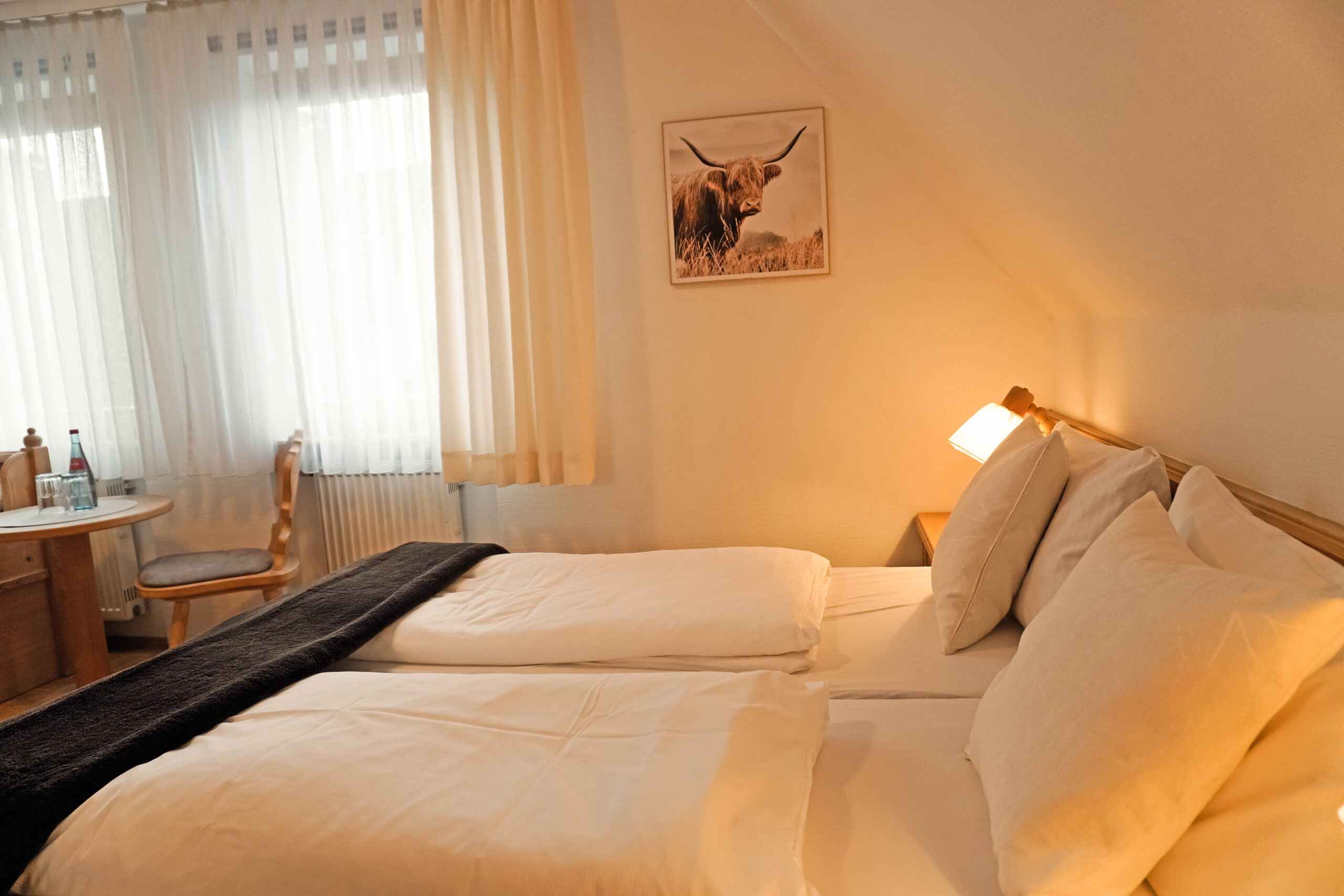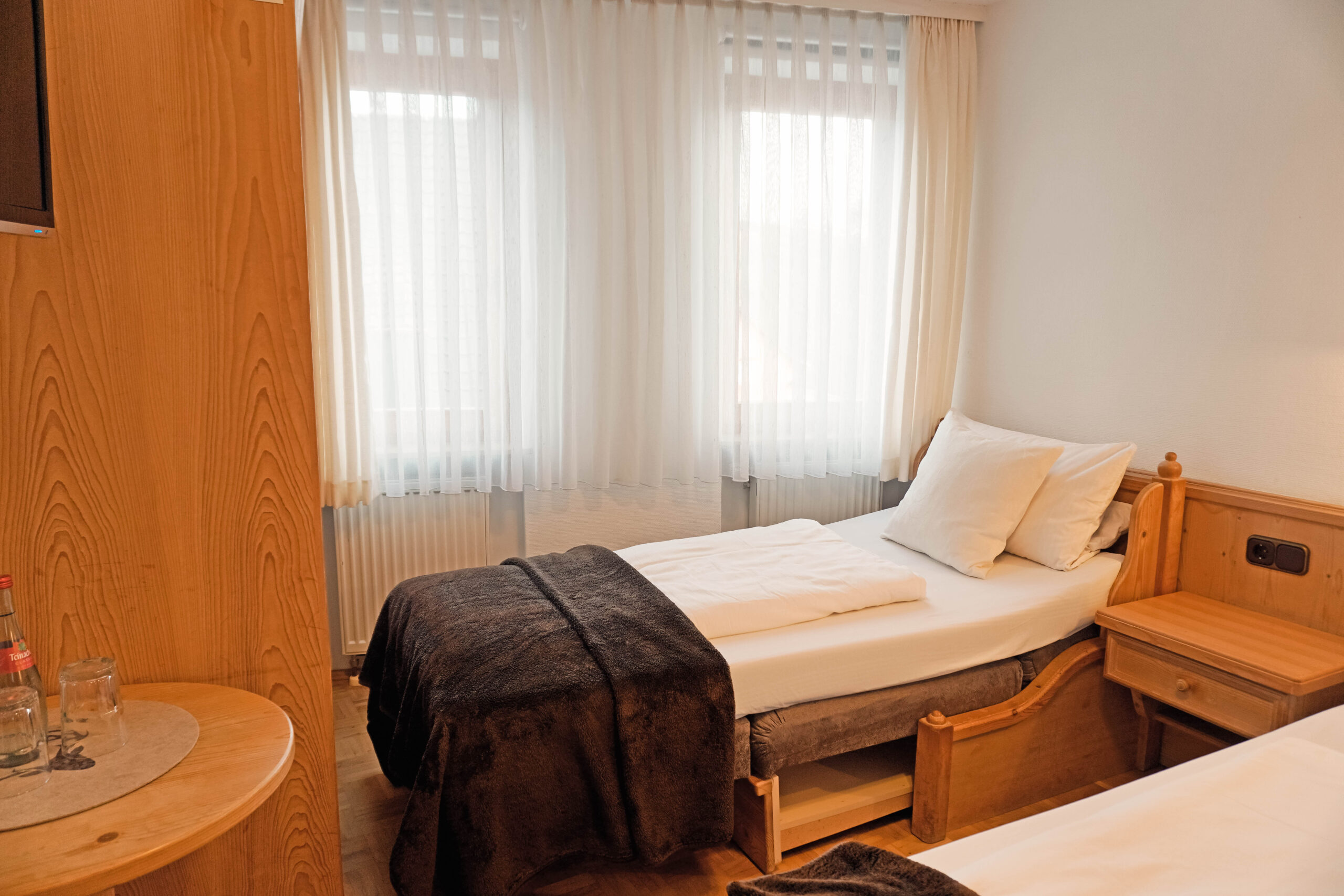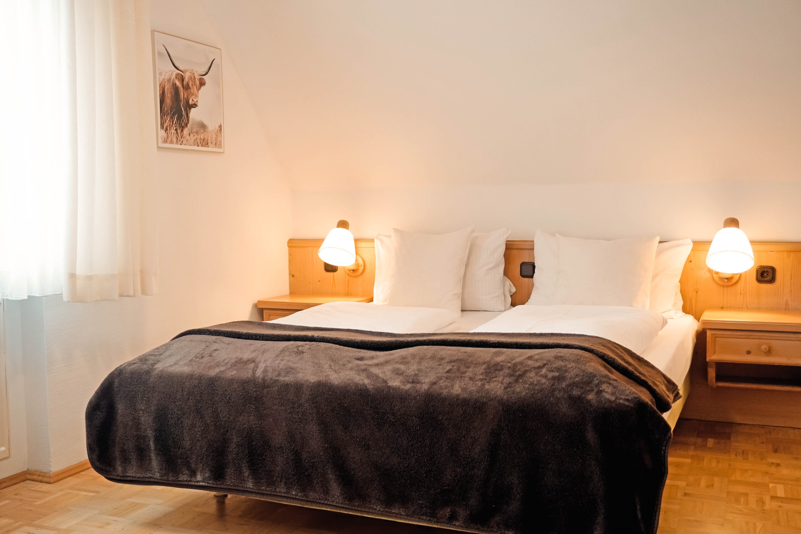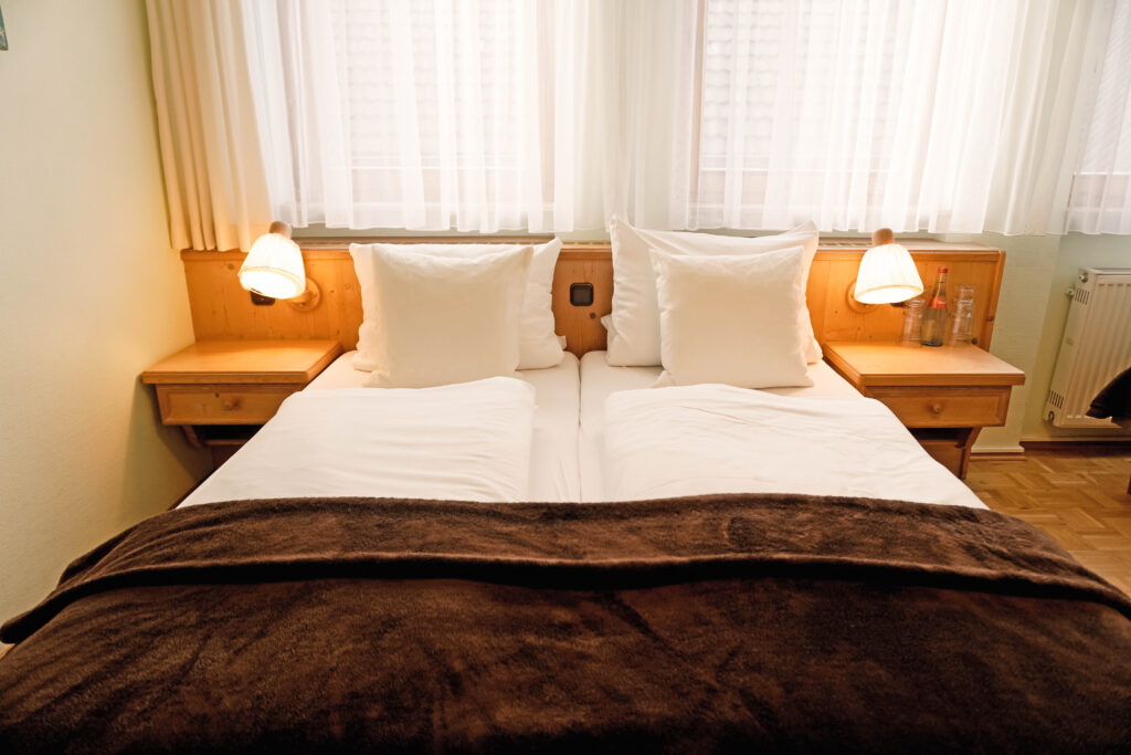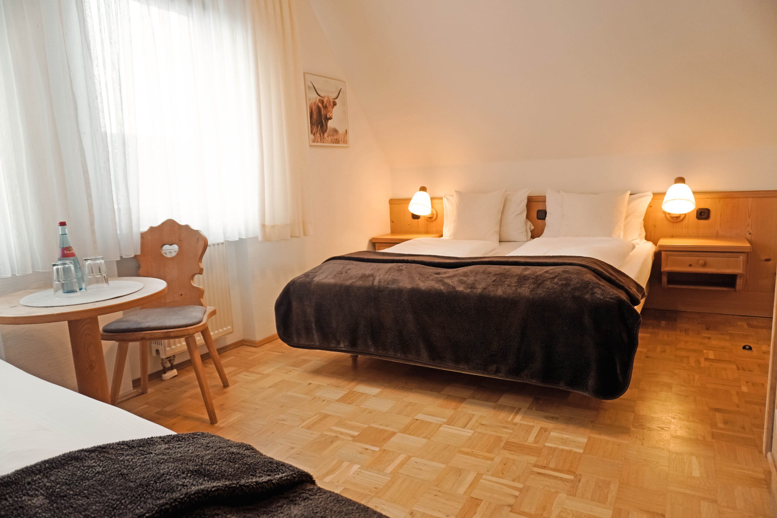Unsere Mehrbettzimmer basieren auf den Doppelzimmern und sind mit einem oder zwei zusätzlichen Betten buchbar. Sie bieten ausreichend Platz und eine praktische Ausstattung für einen komfortablen Aufenthalt, ideal für Familien oder kleine Gruppen.